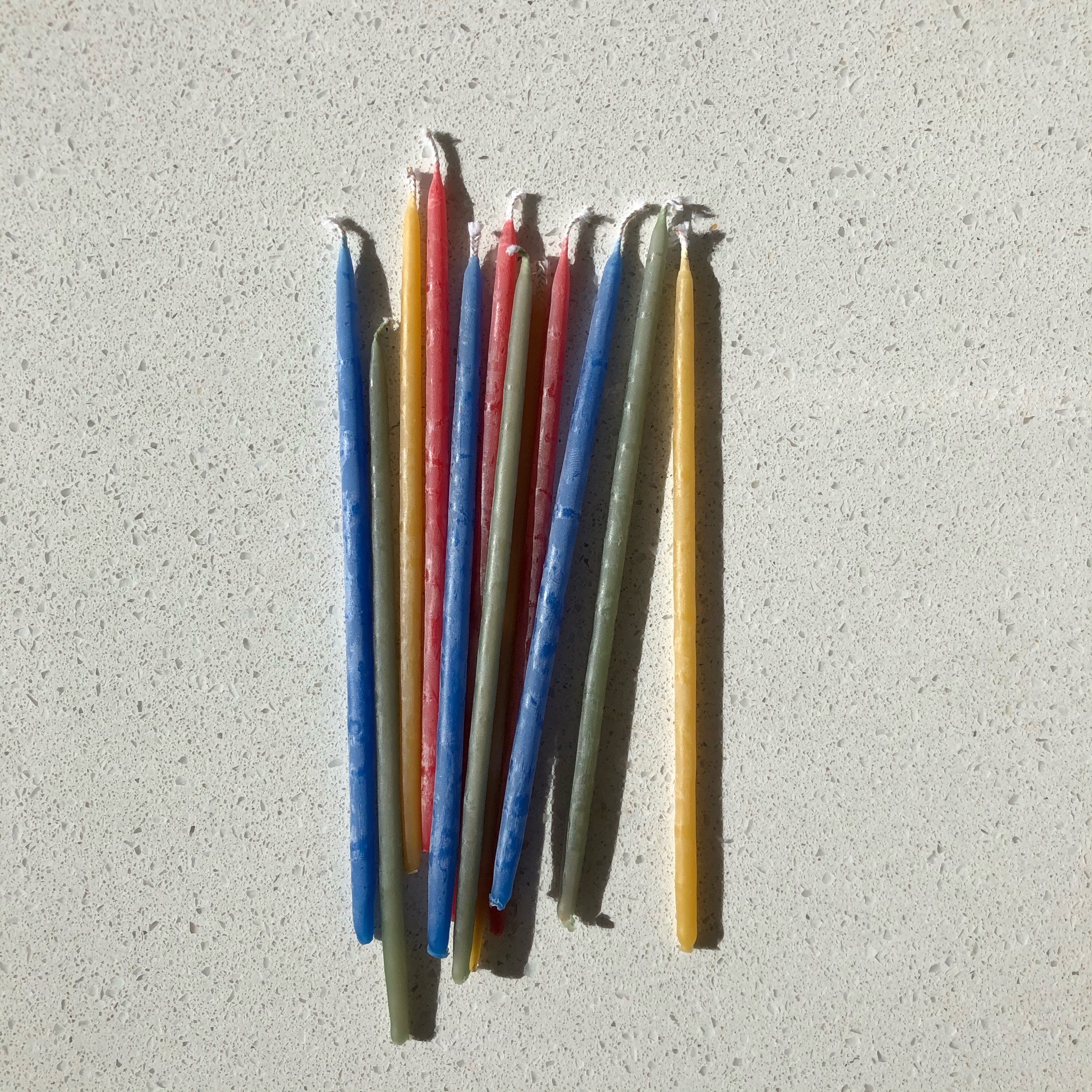 Bougies d’anniversaire en cire d’abeille fait à la main au Canada, confectionnées avec des colorants non toxique et respectueux de l’environnement.